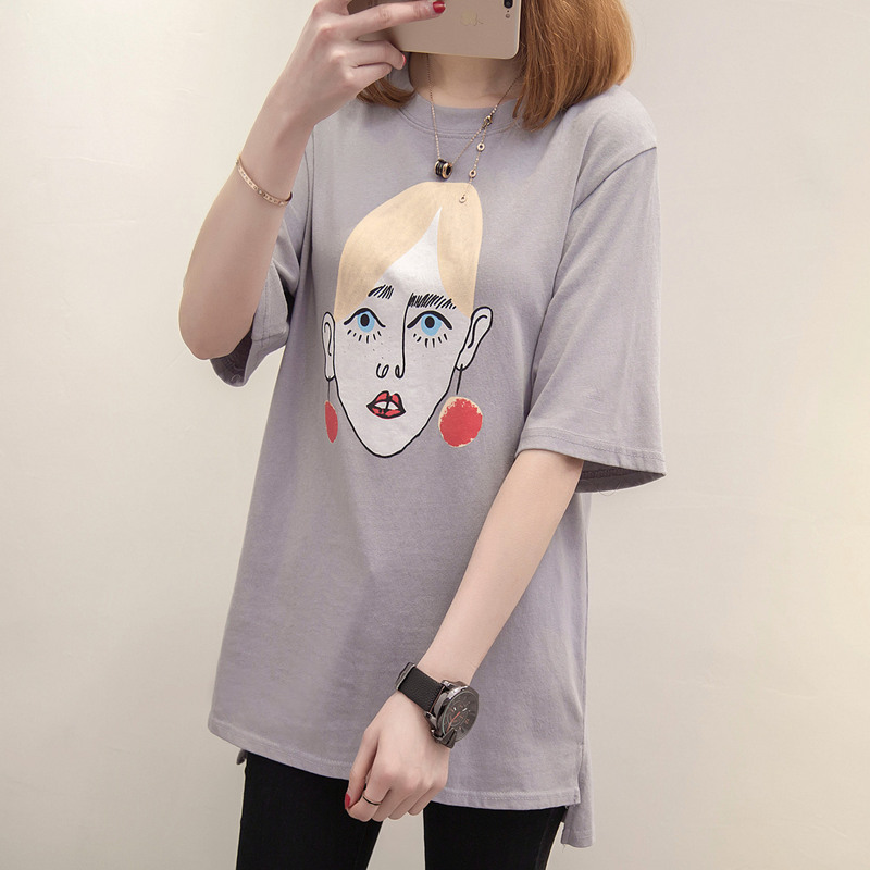 t恤女夏裝寬松韓版打底衫小衫純色開叉個性春季短袖女新款潮