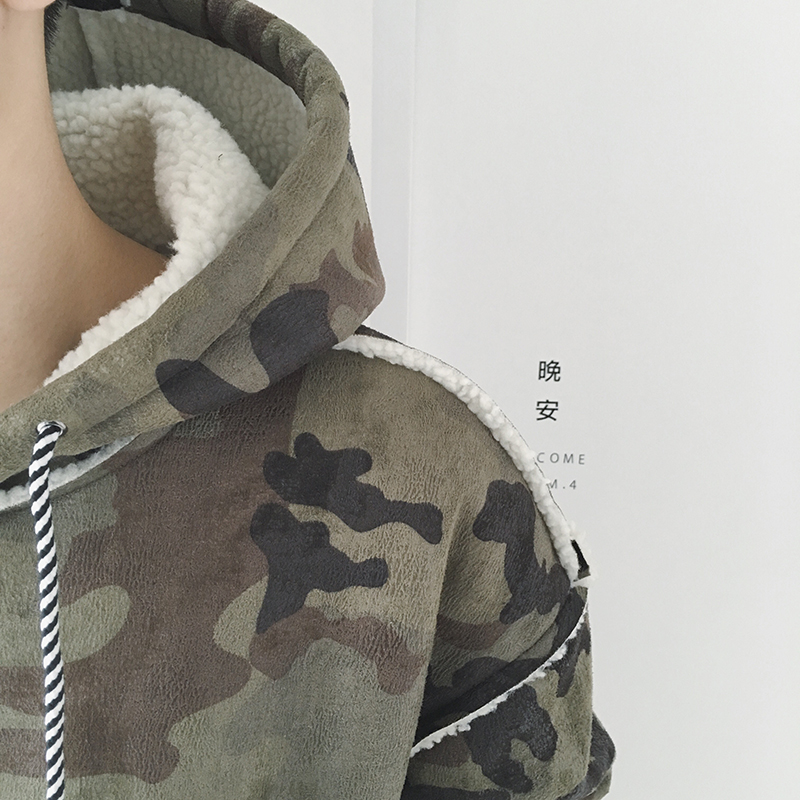 新款男裝加厚加絨連帽外套日系套頭迷彩長袖衛衣