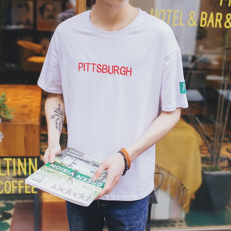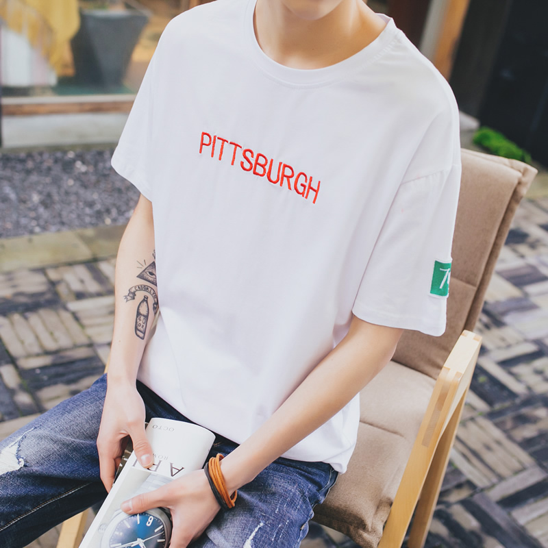 2017夏季新款潮流休閑短袖T恤大碼時尚印花半袖打底衫男