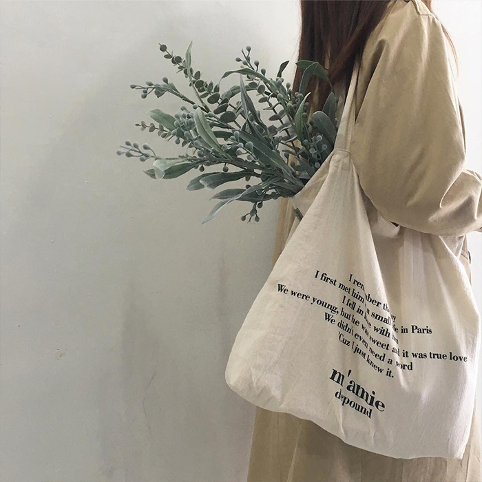 chic韓風 系帶水洗棉麻字母包單肩包手提包 環保購物袋
