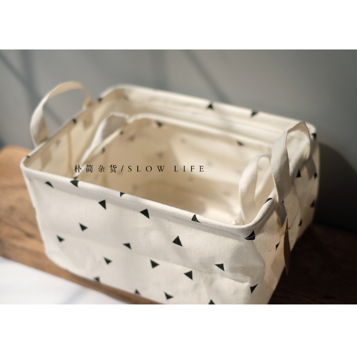 樸簡|北歐黑白三角棉麻桌面收納籃收納盒 布藝儲物籃家居收納箱