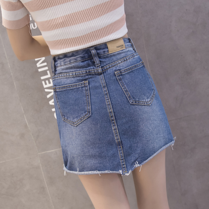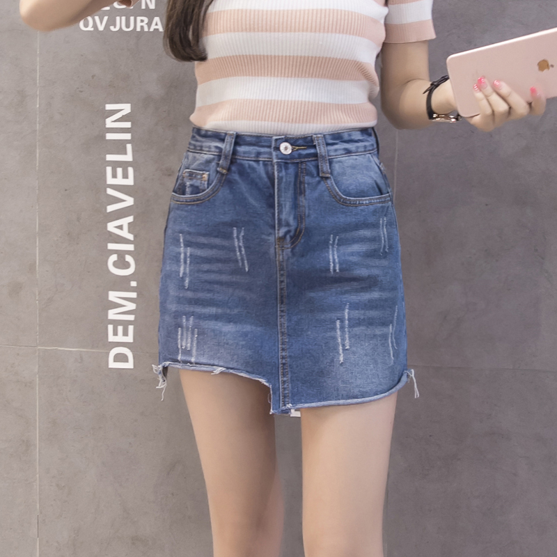 不規則破洞牛仔裙半身裙女韓版高腰A字裙包臀短裙防走光褲裙夏季