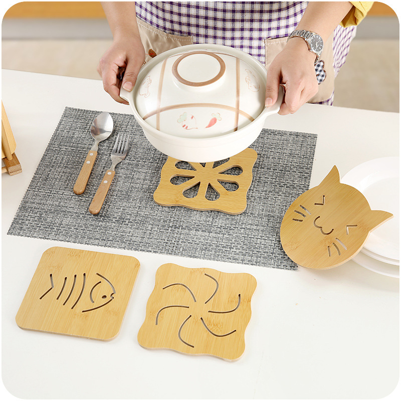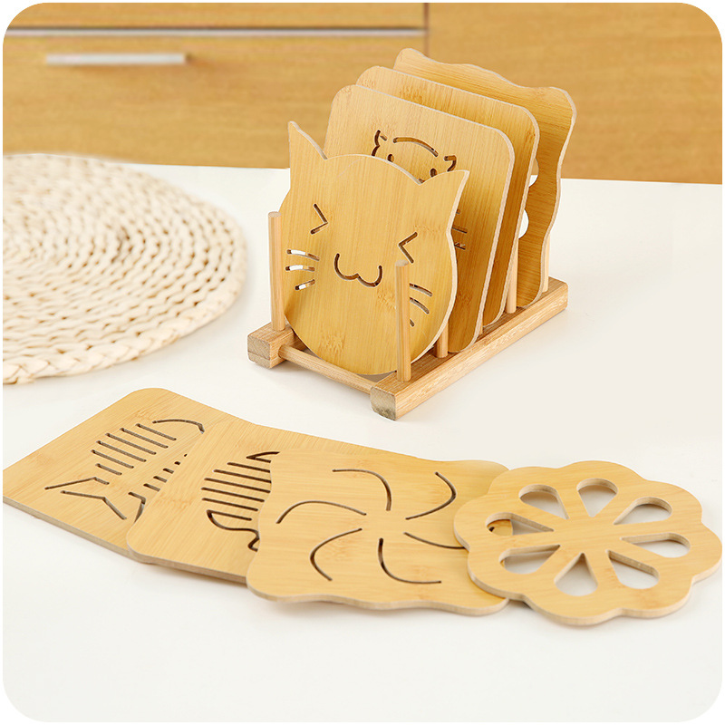 碗墊木質鏤空花紋餐桌隔熱杯墊9件套裝純色卡通可愛防燙砂鍋墊架