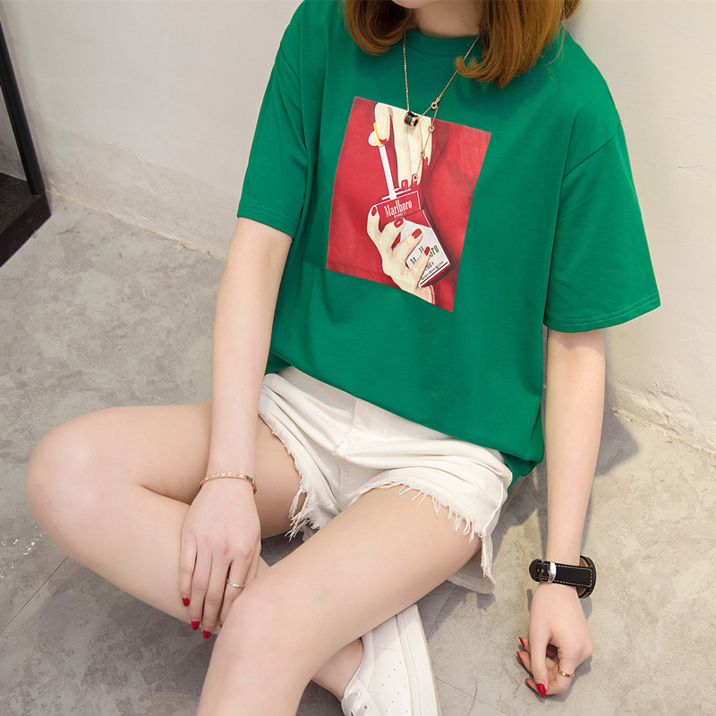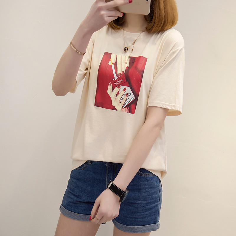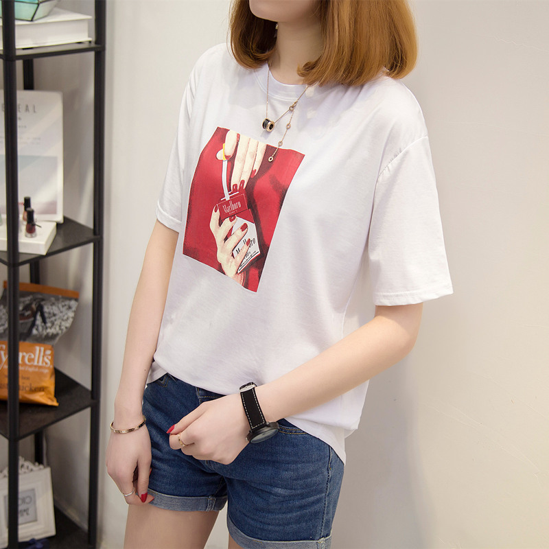 白色t恤女寬松打底體恤衫韓版休閑印花上衣短袖女夏裝新款潮