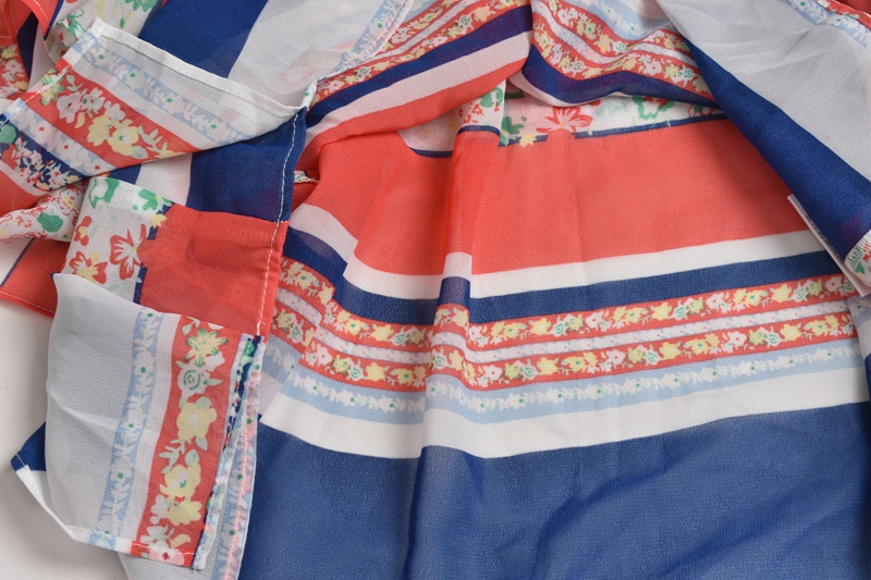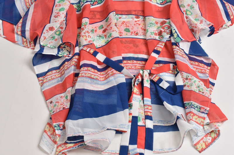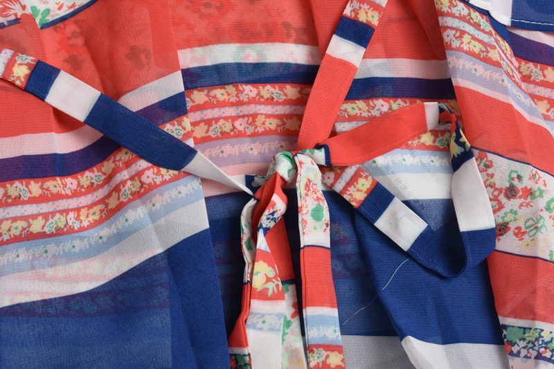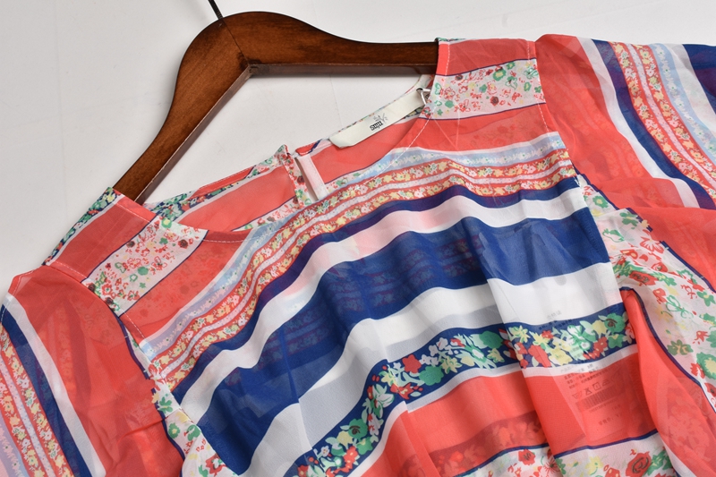 休閑百搭寬松顯瘦拼色印花春夏新款橫條紋雪紡衫