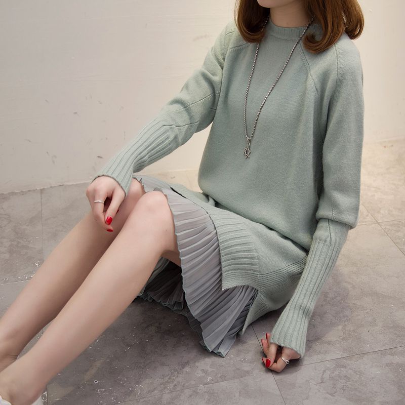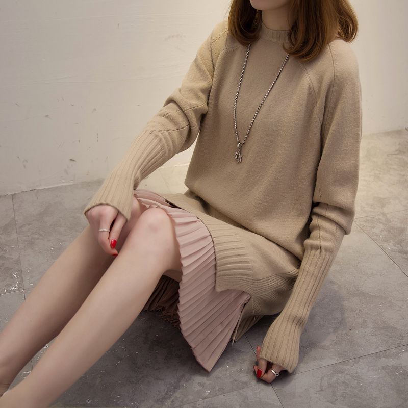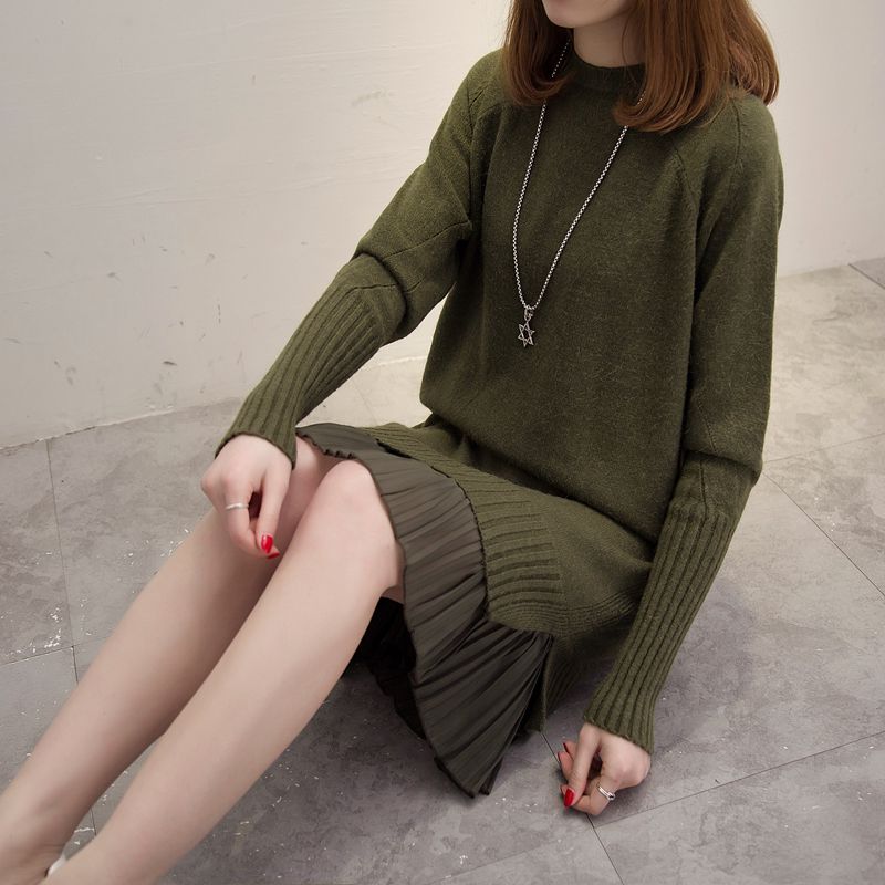 女裝冬裝新款潮套頭女針織衫上衣毛衣女秋冬純色中長款外套女