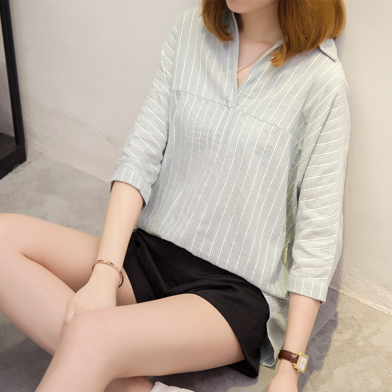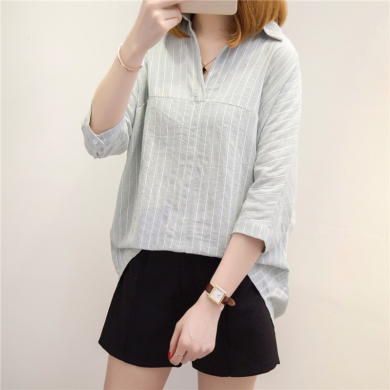 條紋襯衫女短袖韓范寬松bf風夏裝襯衣韓版百搭學生小清新上衣