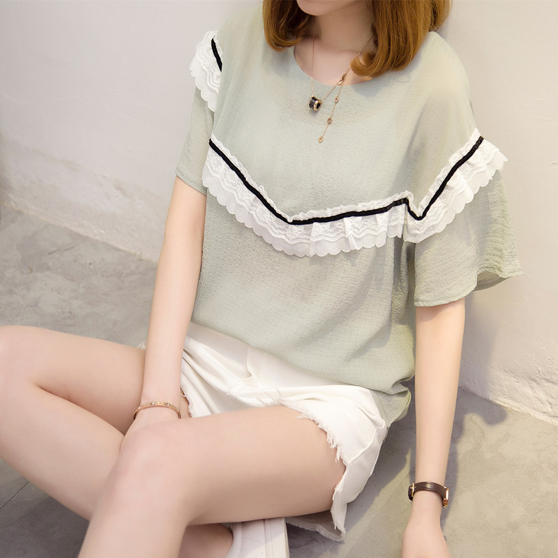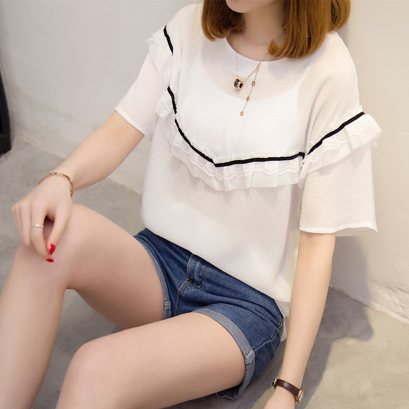 夏裝新款女短袖t恤女裝韓版女上衣百搭拼接蕾絲打底體恤衫潮