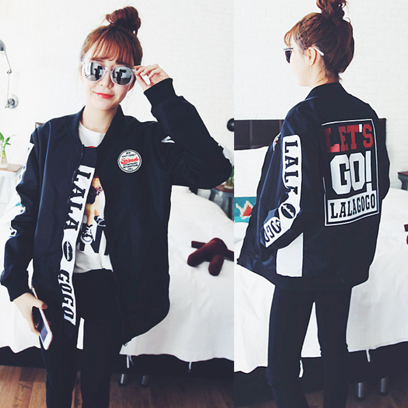 2016春裝新款原宿學院風短款薄外套bf韓國字母學生運動棒球服女潮