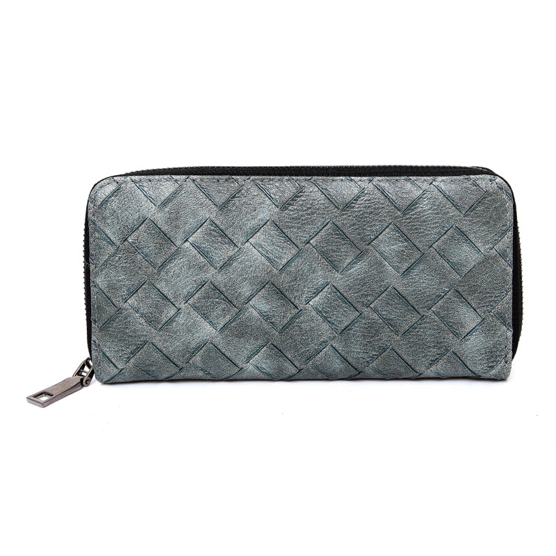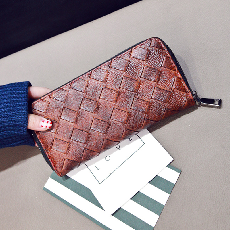 韓版春夏新款潮時尚大牌女士錢包拉鏈手拿包手工編織長款錢包