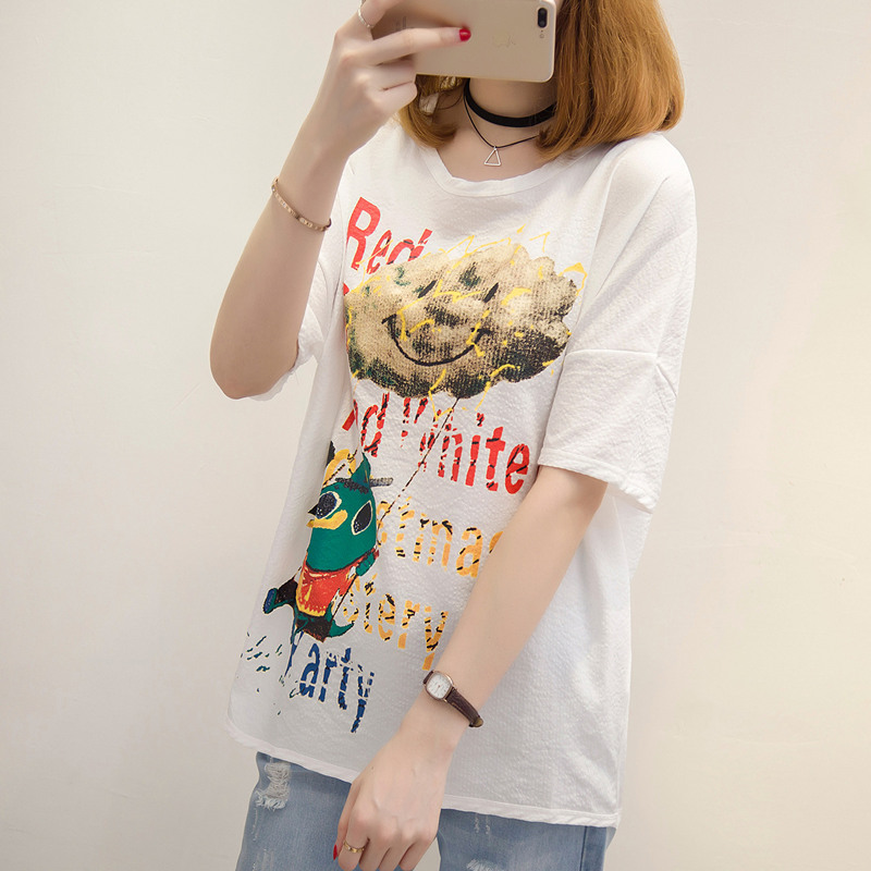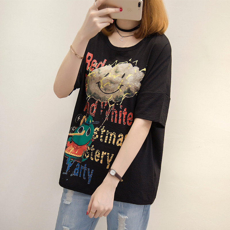 夏裝新款女裝bf風港味t恤女韓版學生寬松體恤衫短袖上衣服女