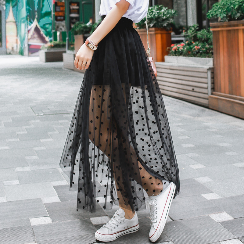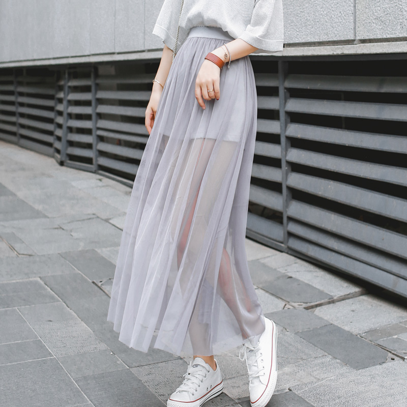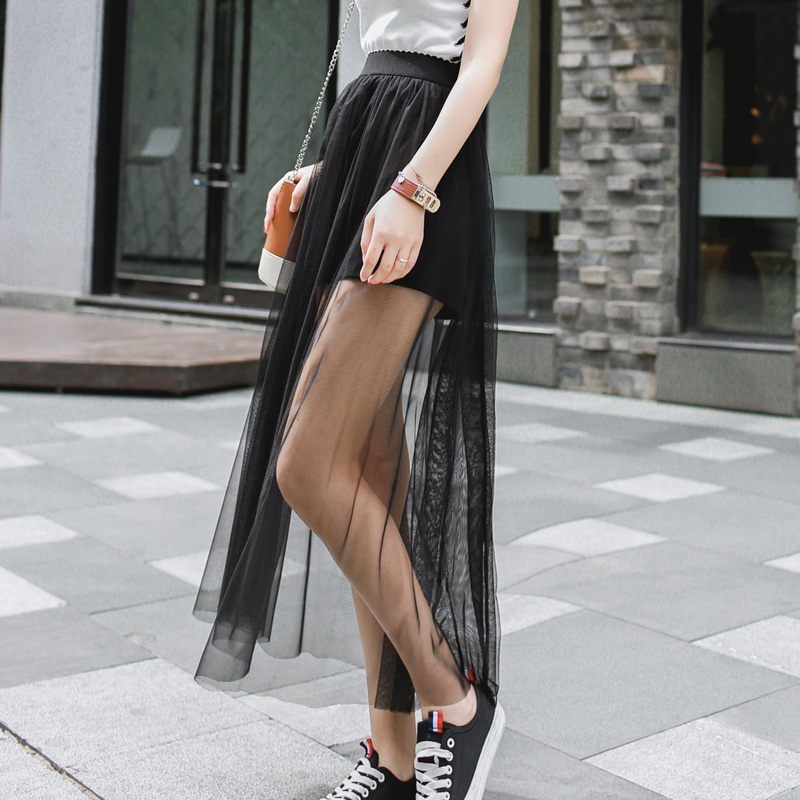 夏季新款透視網紗半身裙罩裙韓版中長款長裙性感學生高腰紗裙