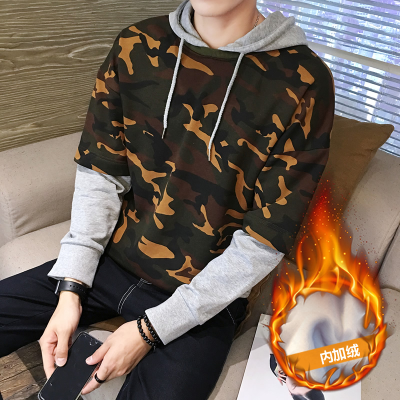 春季套頭衛衣男士連帽加絨帽衫韓版修身學生帶帽外套潮