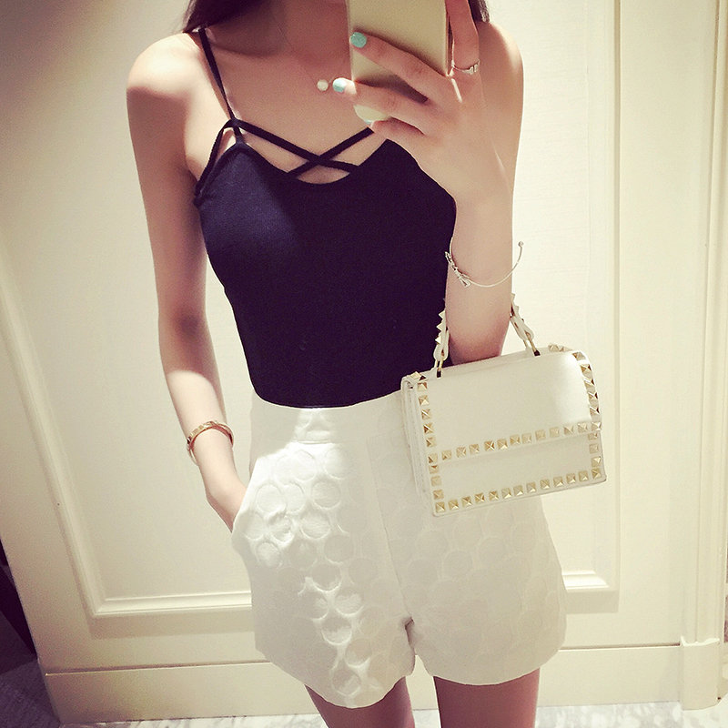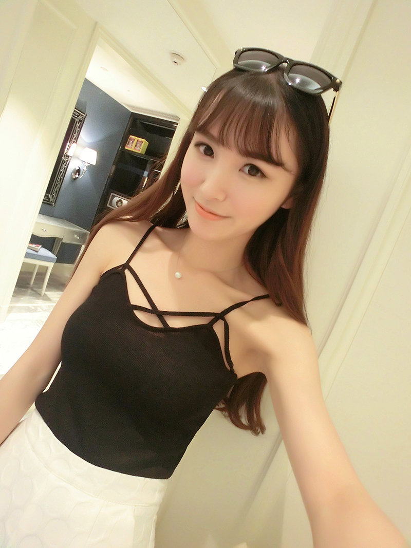 小性感后背交叉,短款,修身針織吊帶衫。