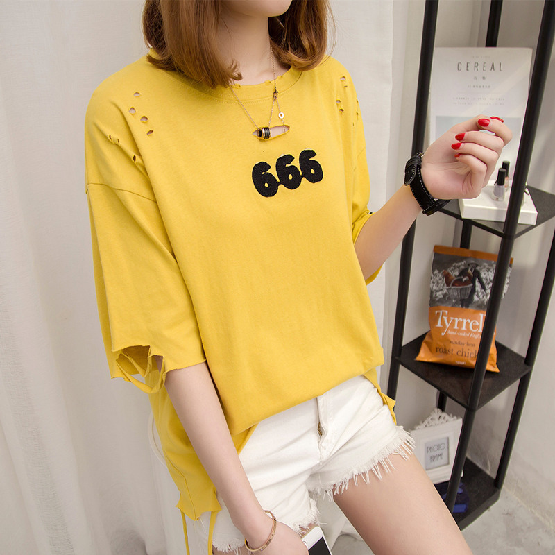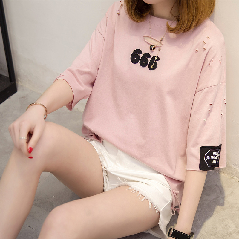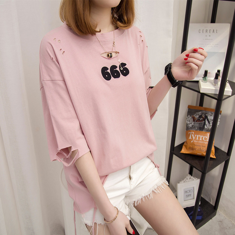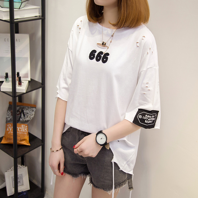短袖上衣女夏新款白色t恤女中長袖韓版寬松半袖打底體恤百搭