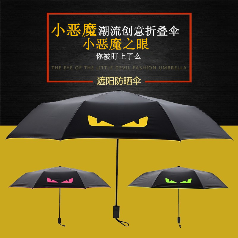 黑膠防曬太陽傘小惡魔折疊創意傘防紫外線遮陽傘學生晴雨傘個性傘