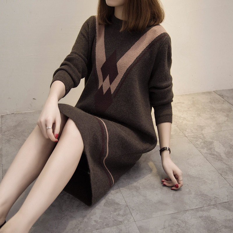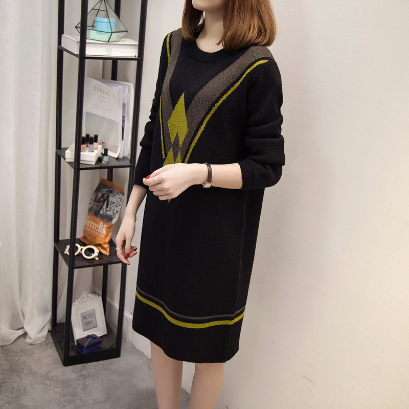 秋冬季新款潮打底衫女毛衣裙外套新款潮圓領套頭復古毛線衣女