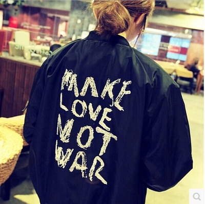 16春秋裝韓版bf原宿風寬松字母薄風衣女短款大碼學生棒球服外套