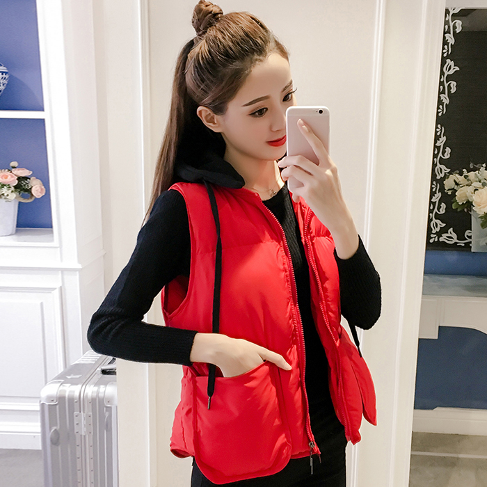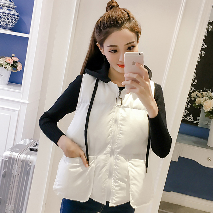 秋裝新款時尚連帽無袖馬甲上衣女裝寬松顯瘦背心馬夾百搭棉襖外套
