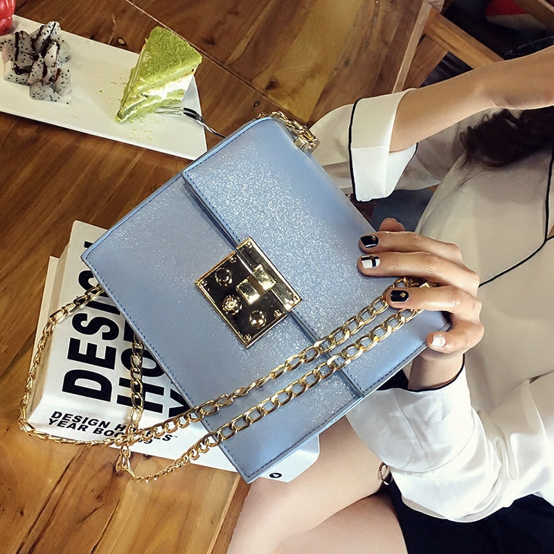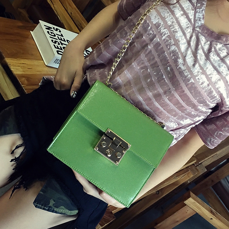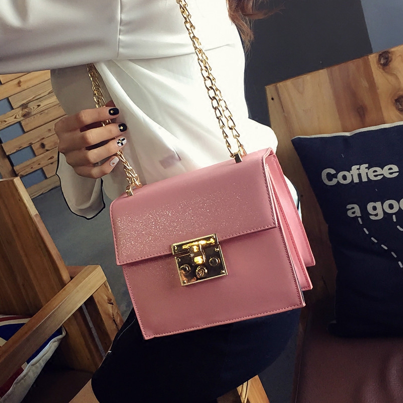 包包女新款潮閃粉迷你小方包個性鎖扣鏈條女包韓版百搭斜挎包