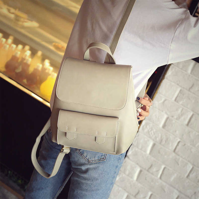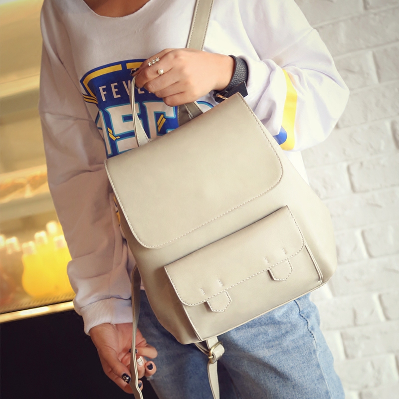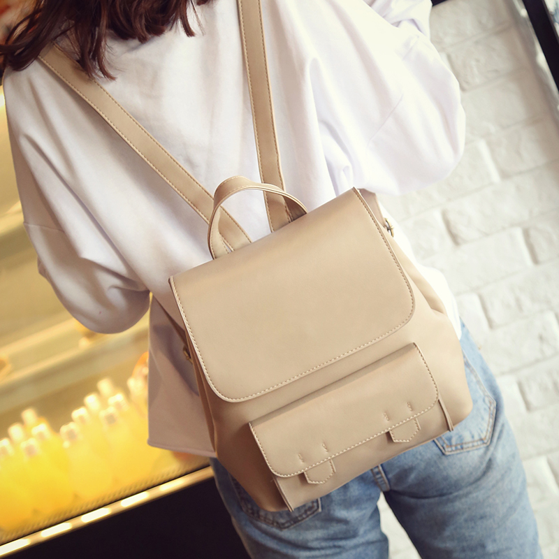 新款雙肩包女日韓潮流簡約時尚背包PU休閑旅行包包學院風書包