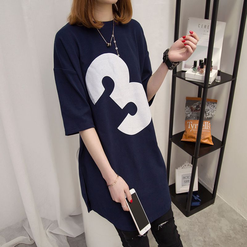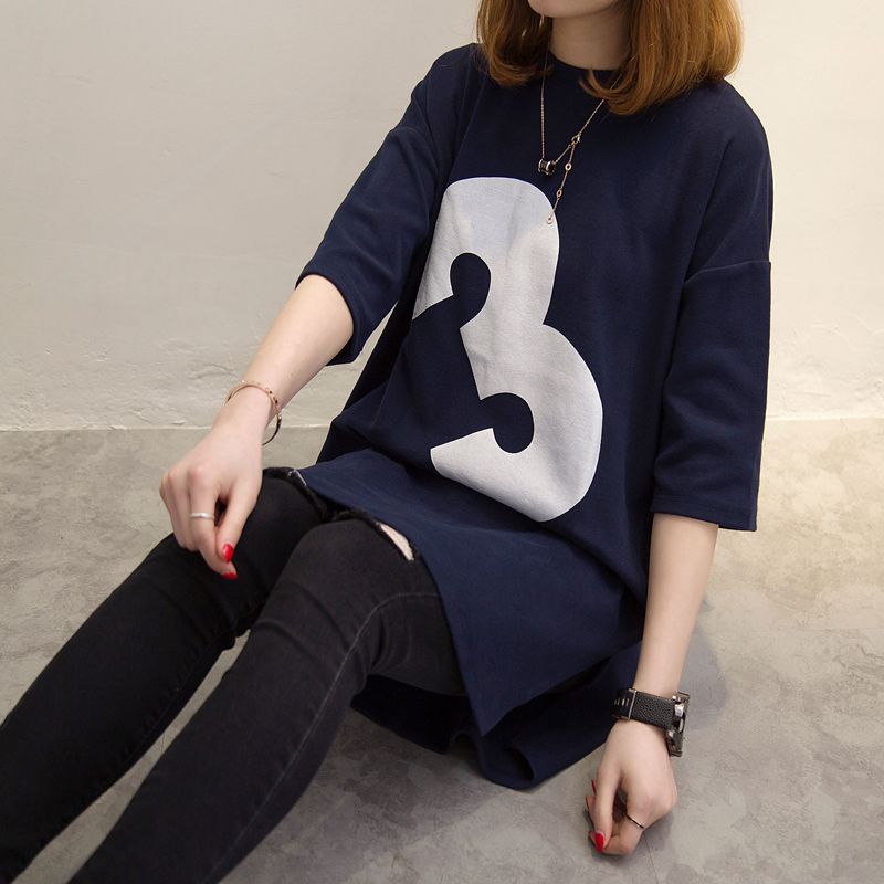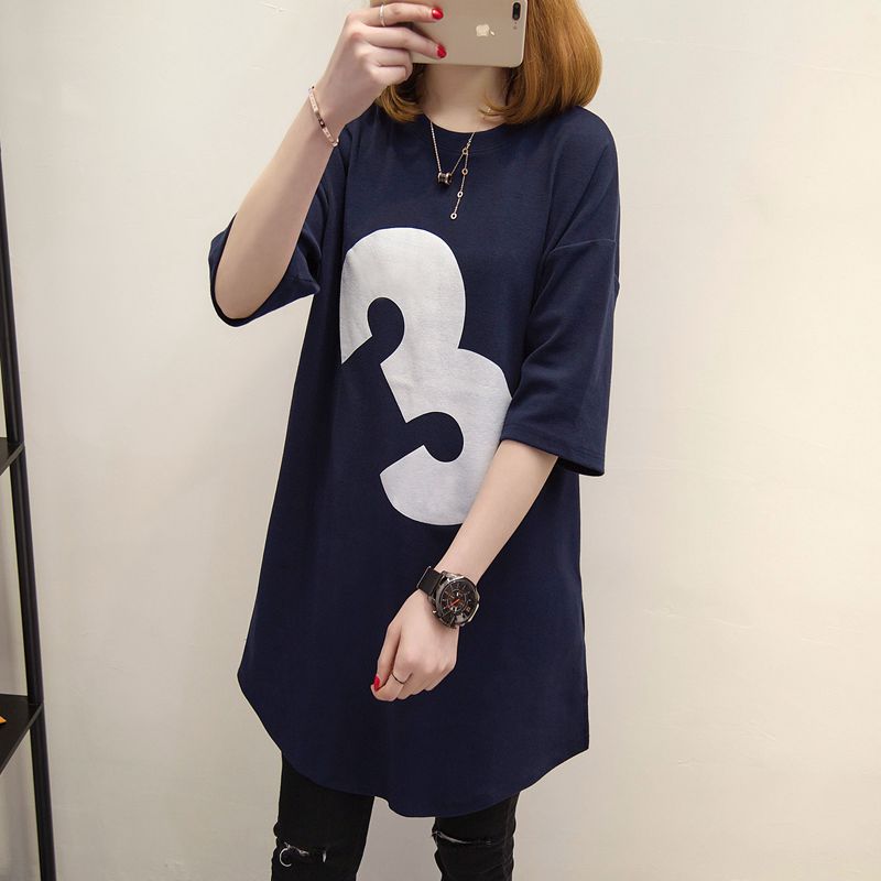 女士上衣女夏新款女裝套頭百搭韓版學生t恤中長款袖體恤衫女