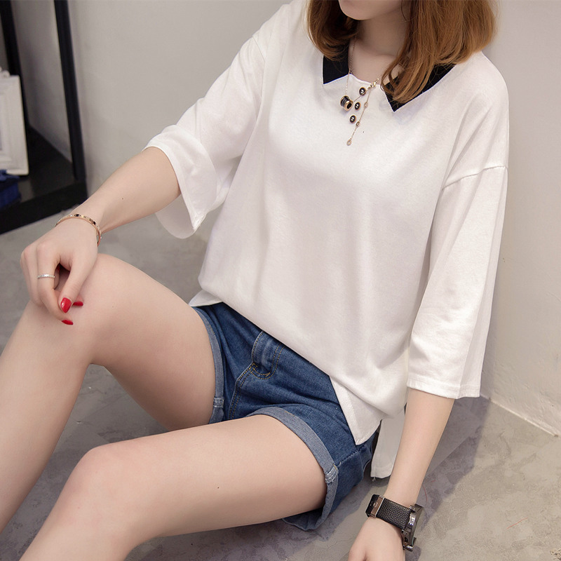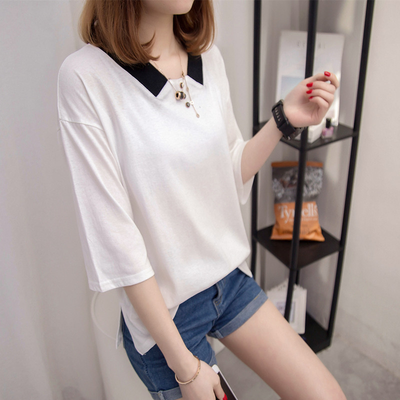 打底衫白色t恤女中長袖打底小衫寬松上衣體恤女裝夏裝新款潮