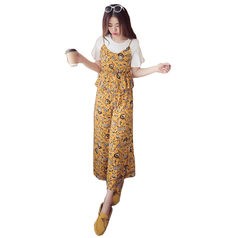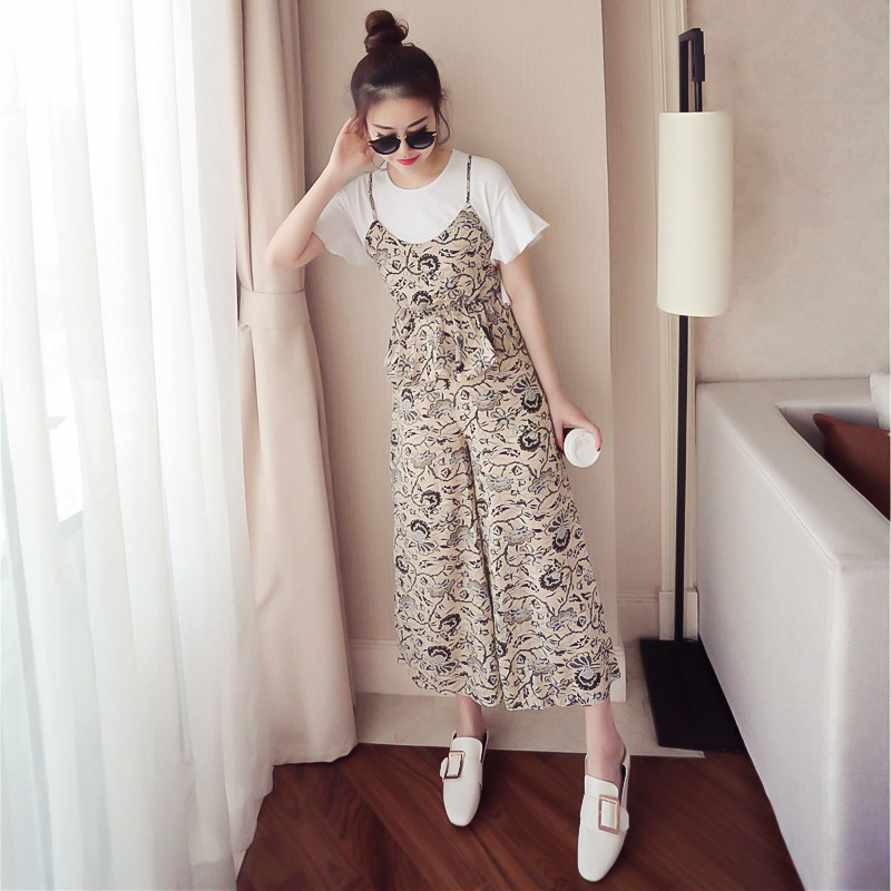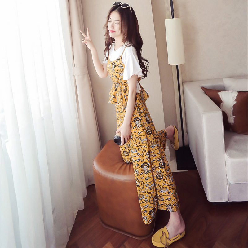 女裝春夏新款韓版小香風吊帶雪紡上衣三件套裝女闊腿褲學生兩件套
