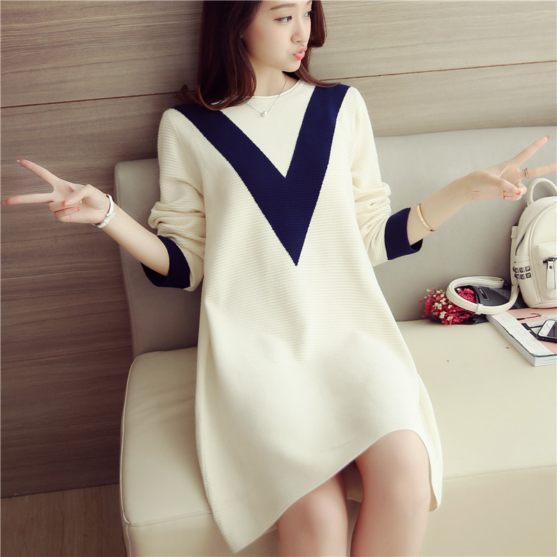 秋韓版寬松中長款長袖毛衣女套頭針織衫連衣裙女裝冬裝新款潮