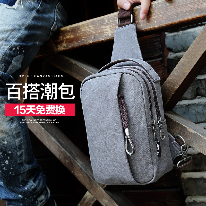胸包男士韓版潮包斜挎包休閑帆布小包背包腰包單肩包男包包