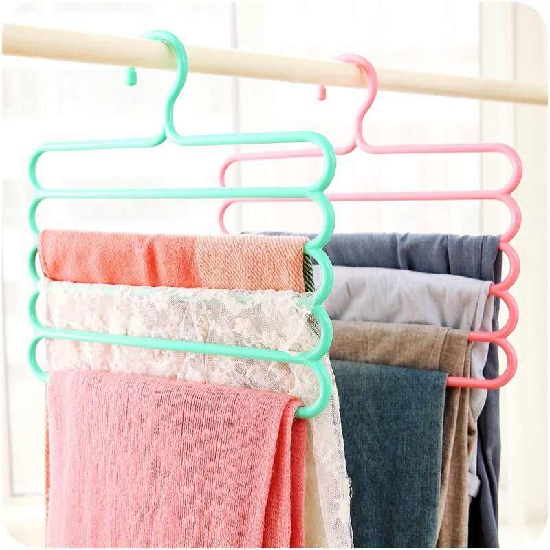 多用衣架 塑料彩色防滑多層掛褲子衣服衣柜5層衣架 圍巾絲巾掛架