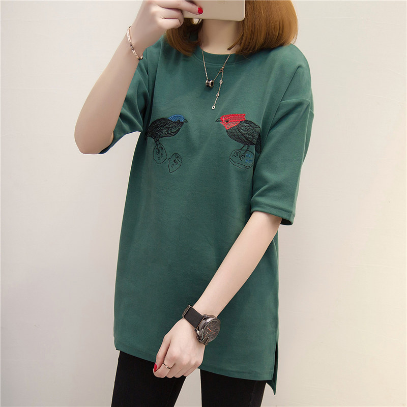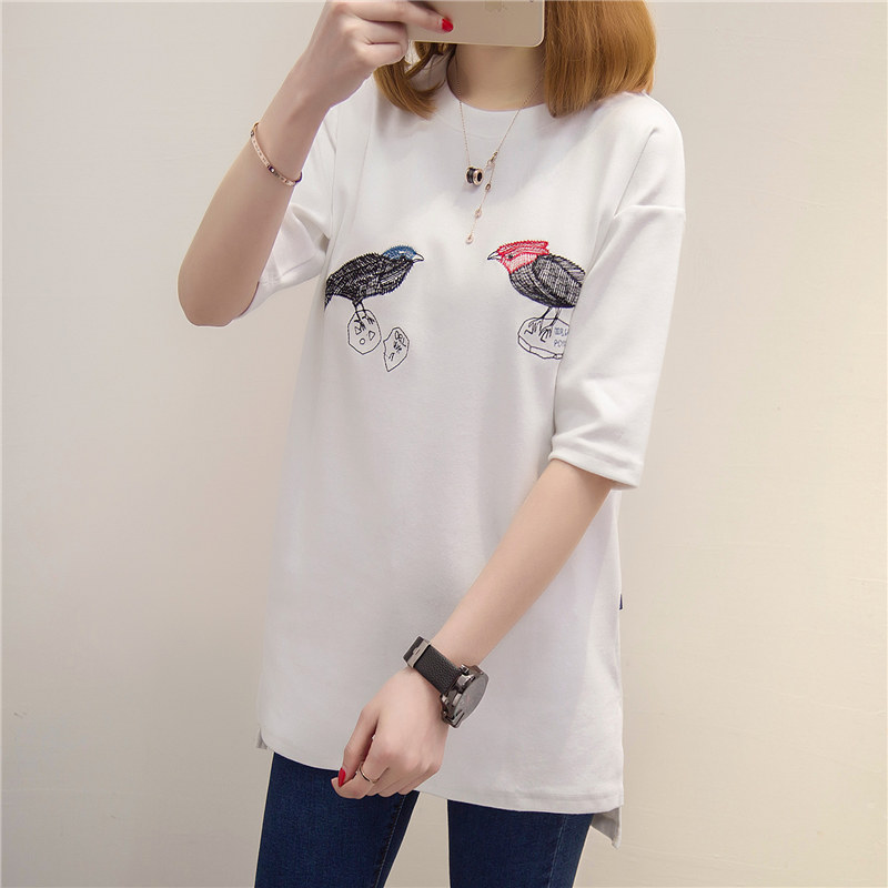 女裝夏裝新款潮上衣短袖T恤女夏寬松韓版中長袖開叉學生百搭