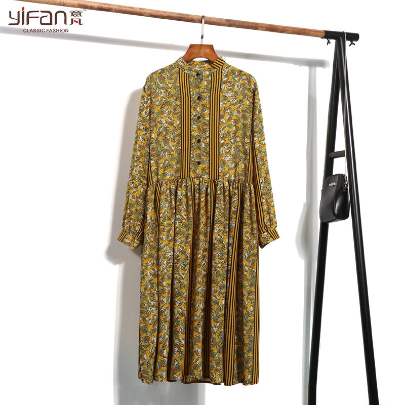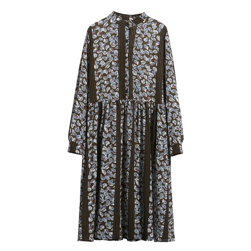 春裝韓國碎花高腰雪紡長袖碎花連衣裙寬松中長款百褶裙女打底裙
