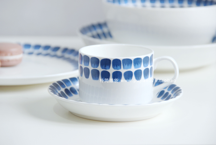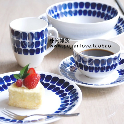 北歐風 芬蘭藍點餐盤8寸盤子 日式陶瓷餐具杯碟碗 西餐盤牛排盤子