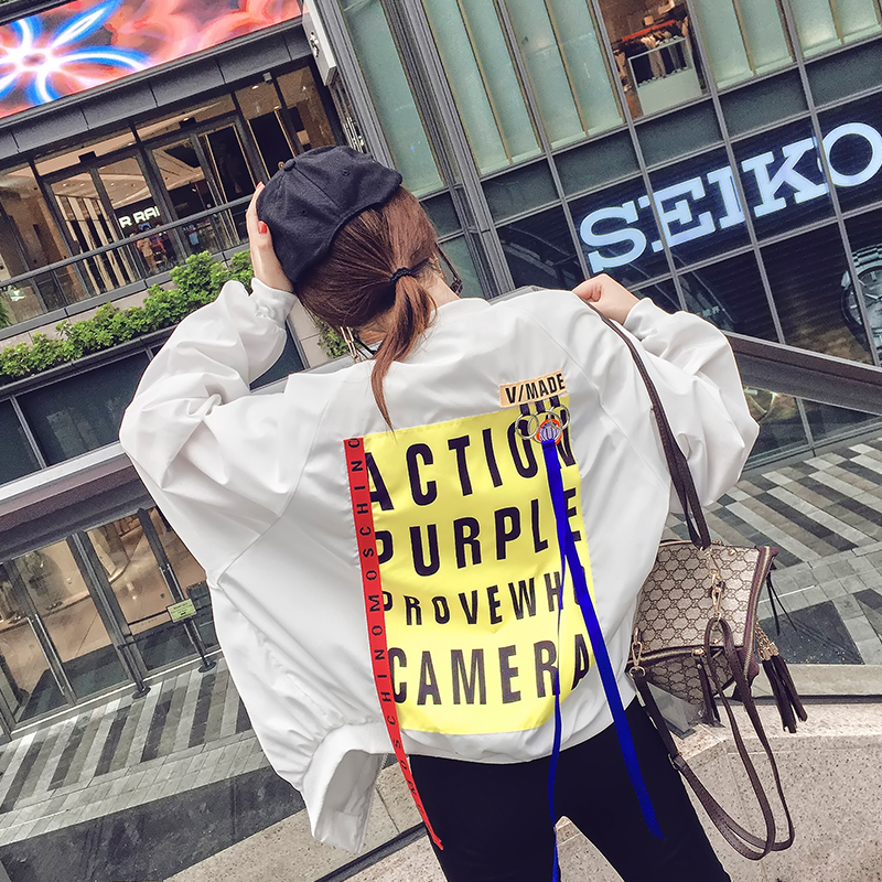棒球服女2017秋季新款韓版寬松百搭bf學生長袖字母印花織帶外套女