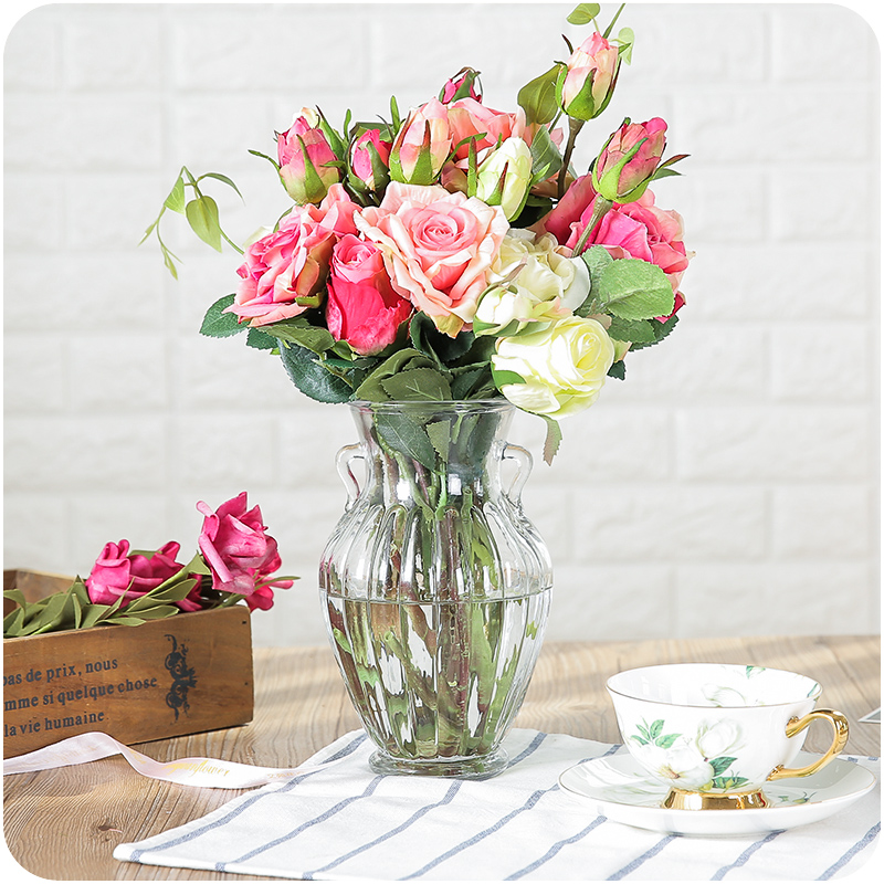 歐式高透明雙耳水晶玻璃花瓶居家辦公插花擺件裝飾品時尚綠植花器