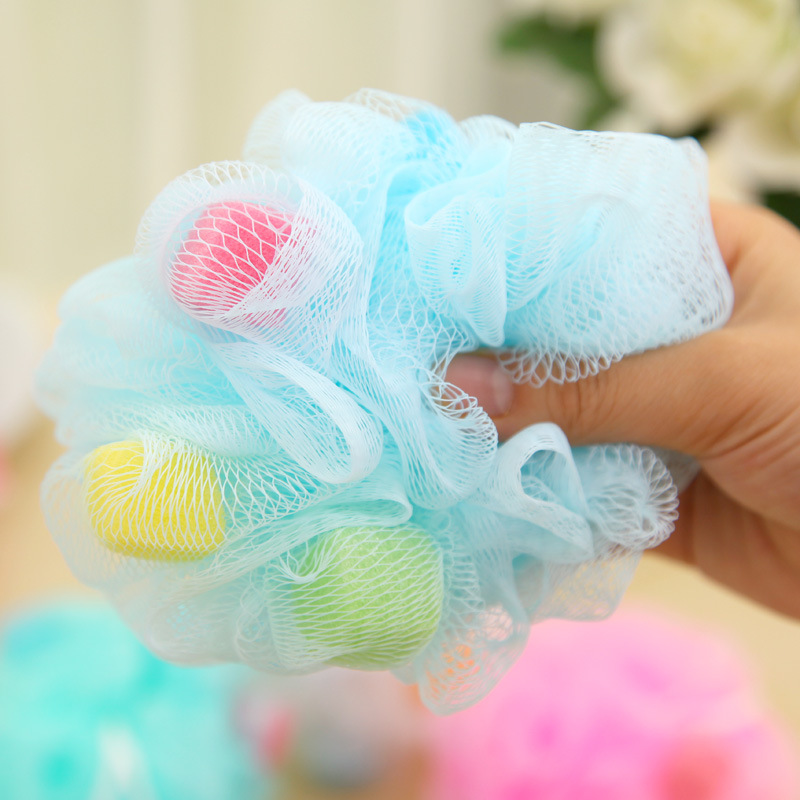 彩色愛心超細膩絲網彩色海綿洗浴球加大清潔沐浴起沫球洗澡浴花掛