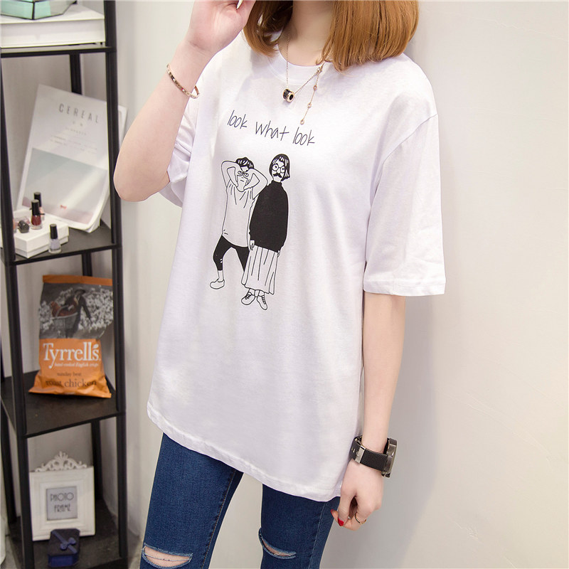 女裝春裝新款潮女體恤短袖卡通韓版寬松上衣純色打底衫t恤女