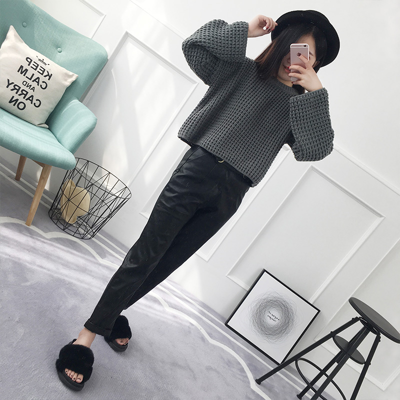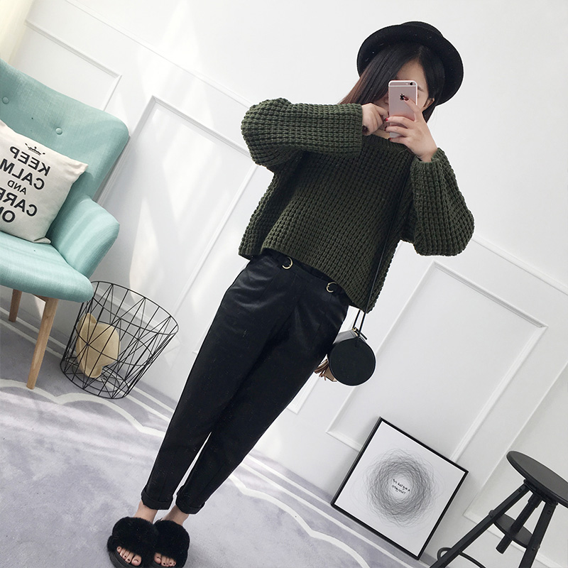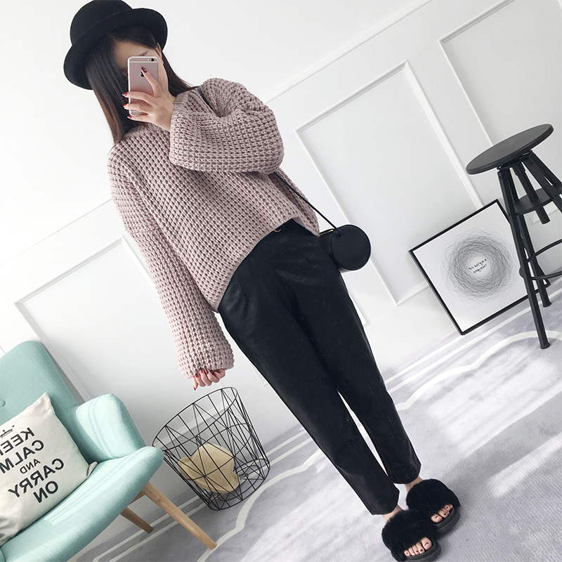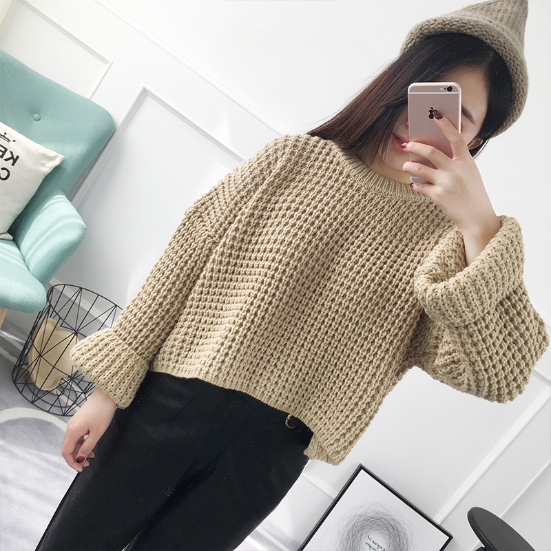 套頭毛衣女秋冬韓版短款寬松粗毛線純色針織衫外套女裝新款潮