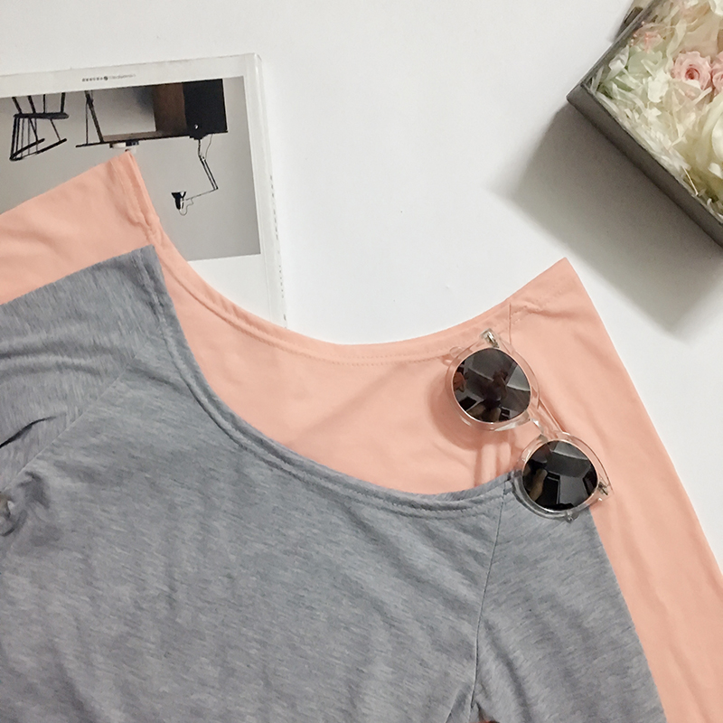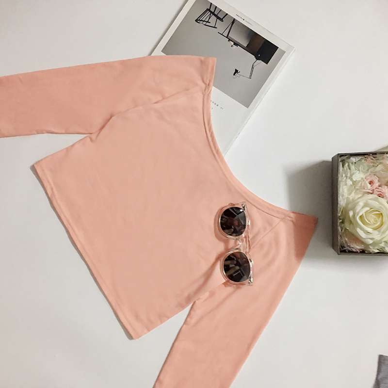 秋裝新款修身一字肩短款打底衫上衣女裝韓版套頭百搭長袖顯瘦T恤