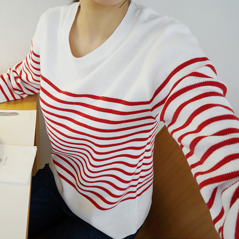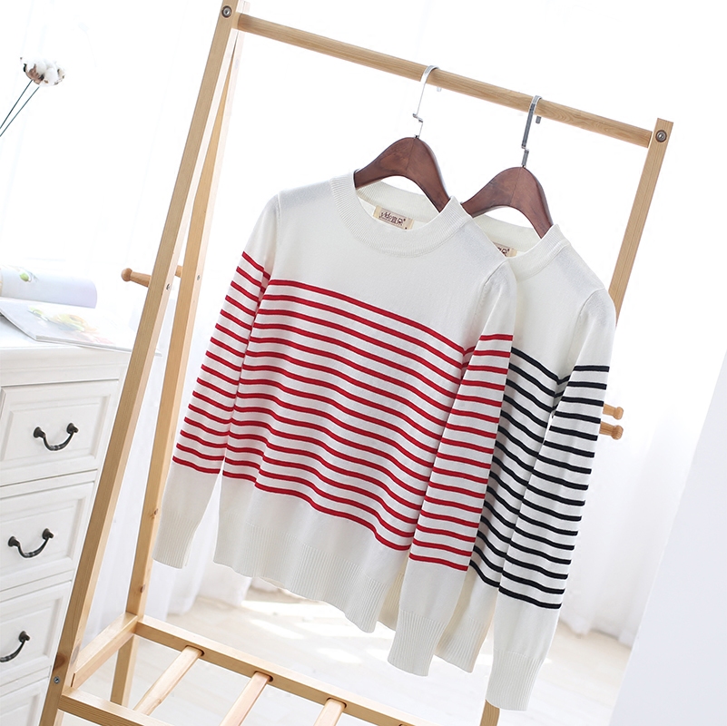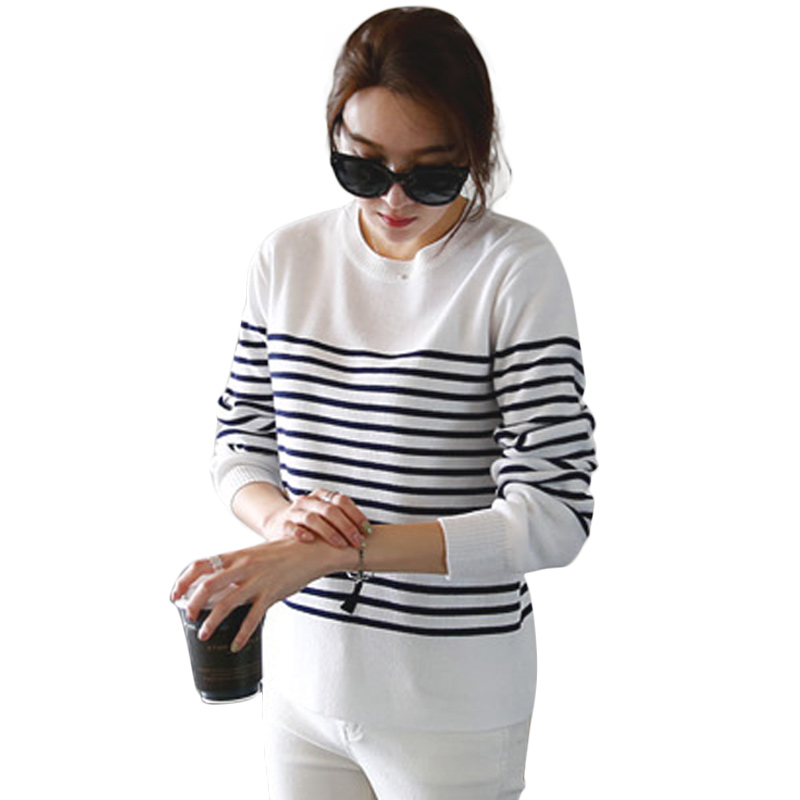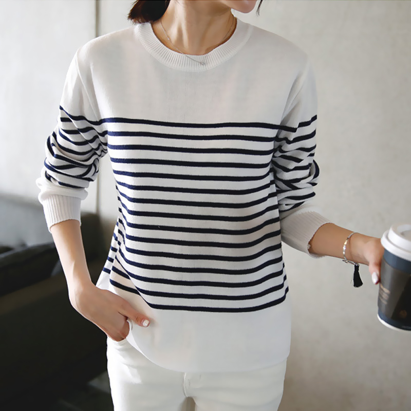 春季針織打底衫女長袖秋冬修身條紋針織衫女套頭短款打底毛衣
