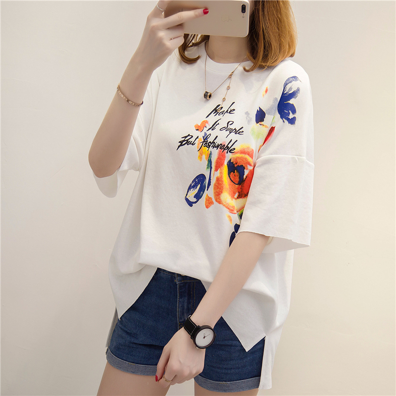 夏裝新款女寬松白色t恤女小清新上衣體恤衫短袖韓版半袖百搭