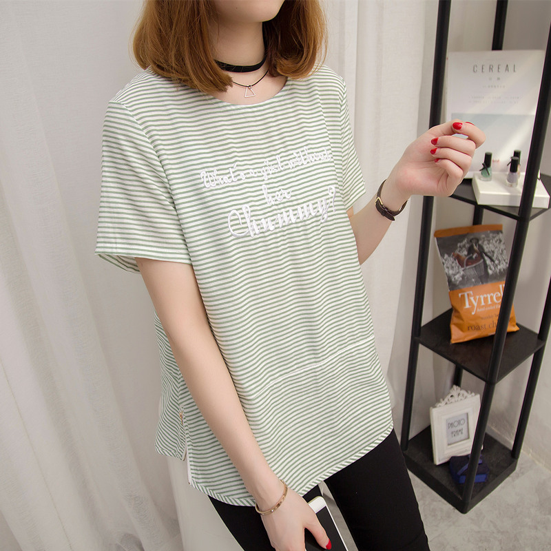 夏裝新款女裝條紋t恤女韓版學生短袖體恤衫小清新上衣女夏潮