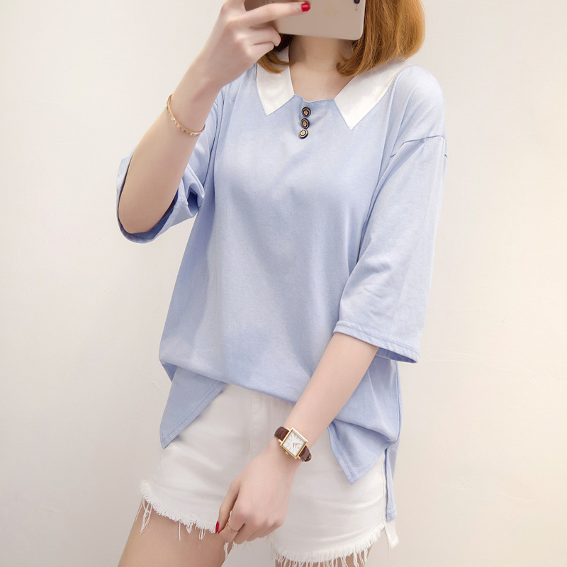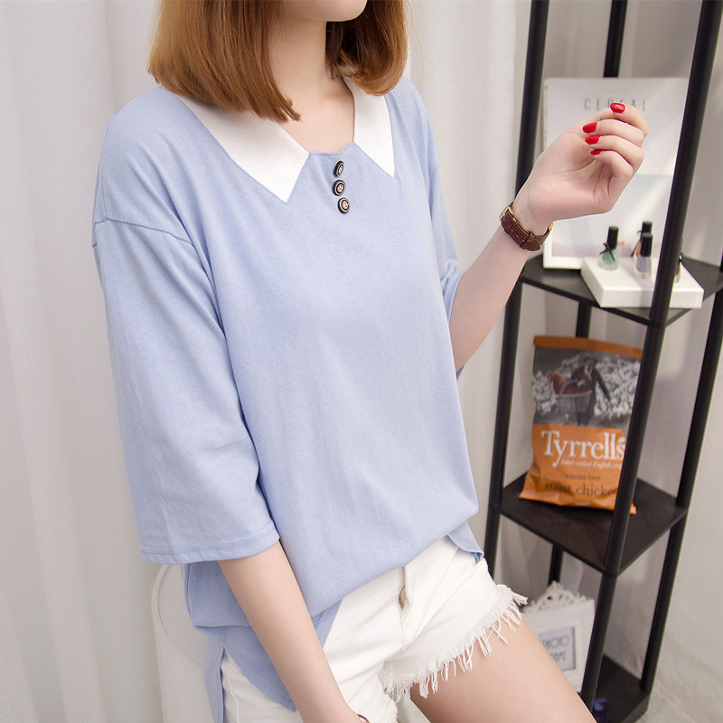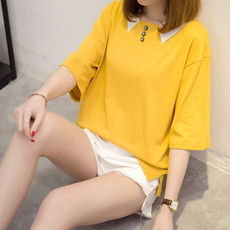 女裝夏裝新款女寬松韓版純色短袖t恤女中長袖打底上衣體恤衫