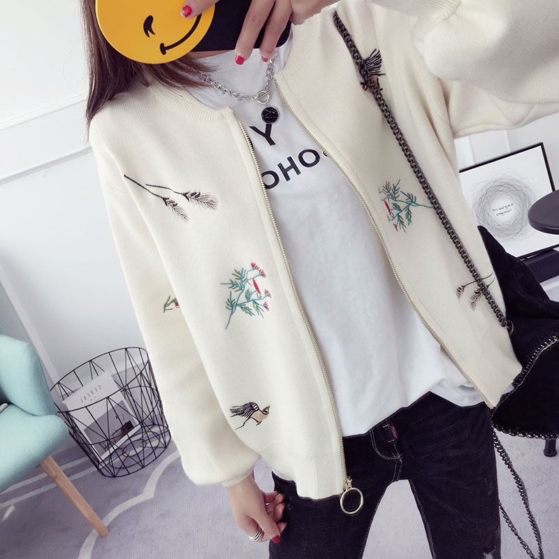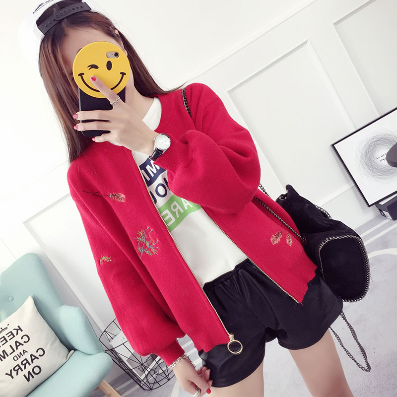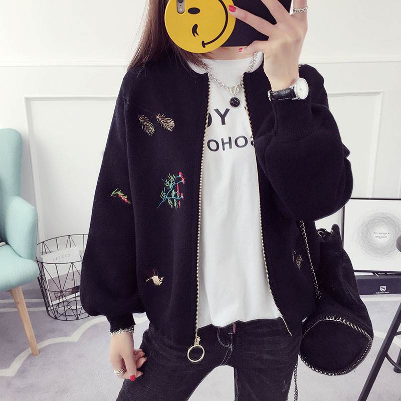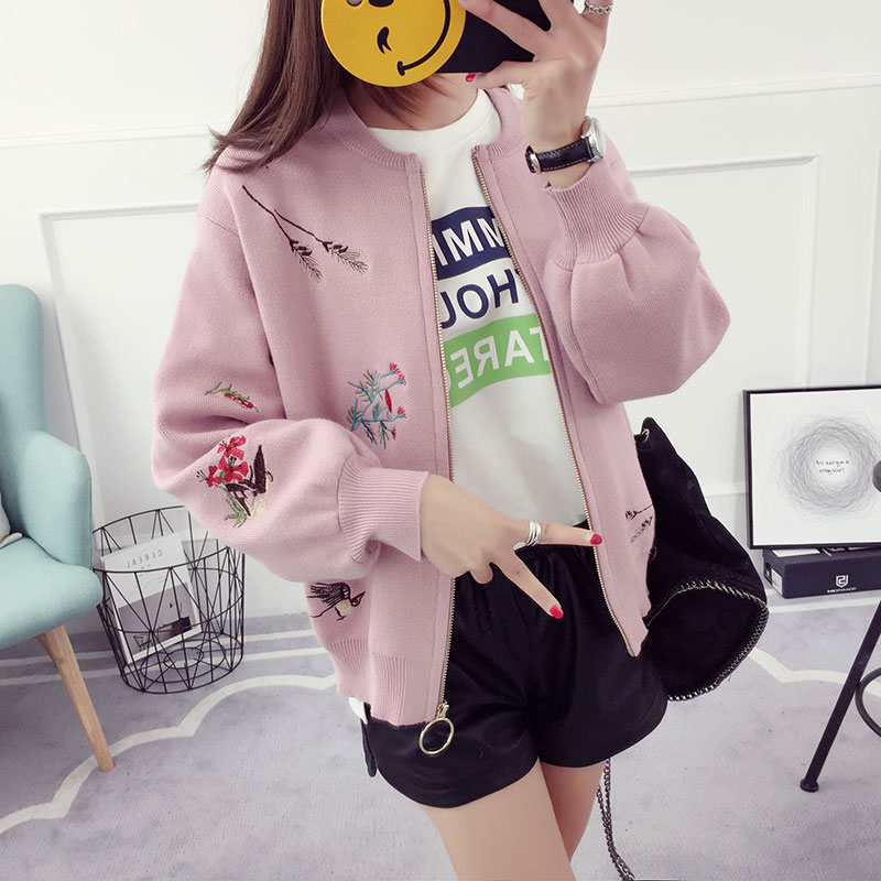 春季針織衫女開衫春裝短款寬松韓版學生刺繡毛衣外套燈籠袖上衣潮