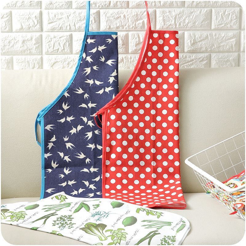 廚房系帶圍裙現代簡約印花色做飯家務女士圍腰防油污掛脖棉麻圍裙