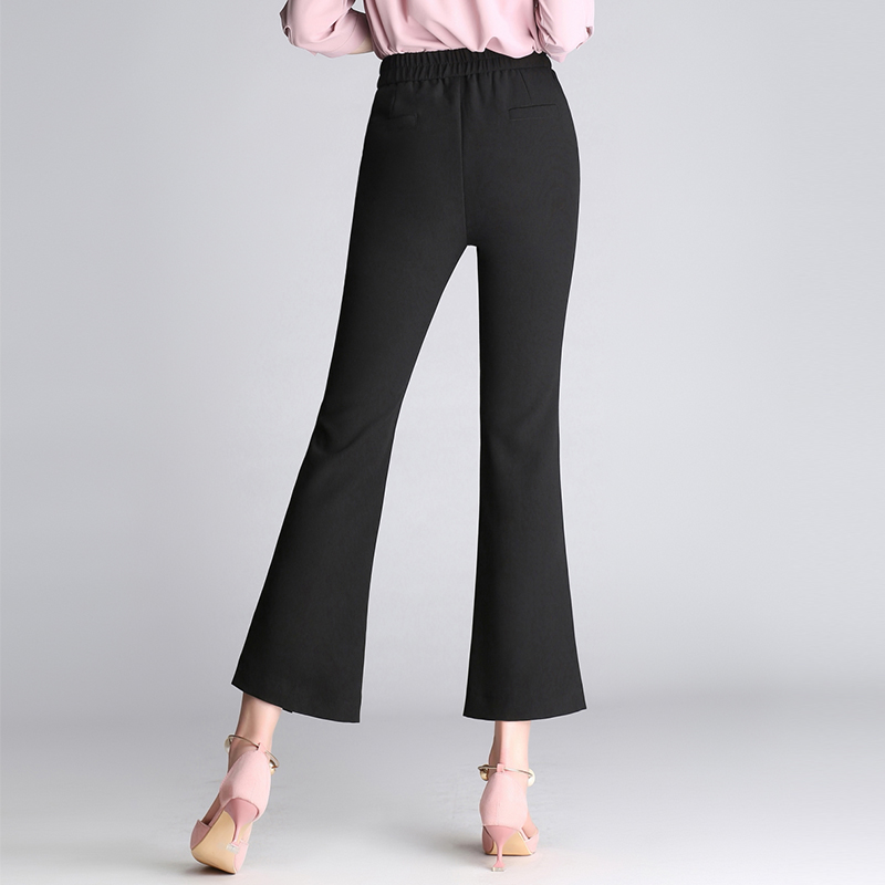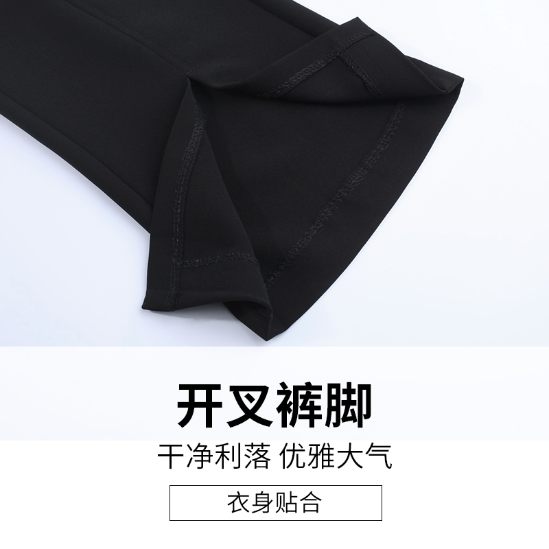 高腰微喇叭褲春夏棉麻女褲新款顯瘦黑色九分褲開叉休閑西裝褲