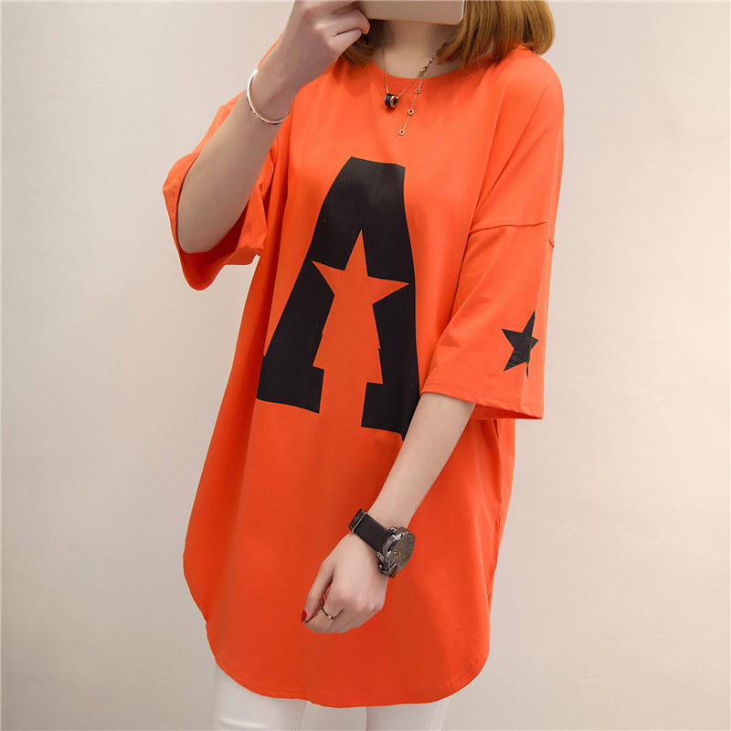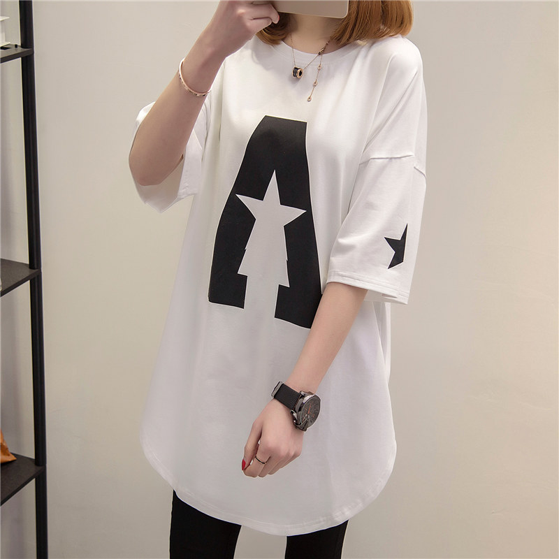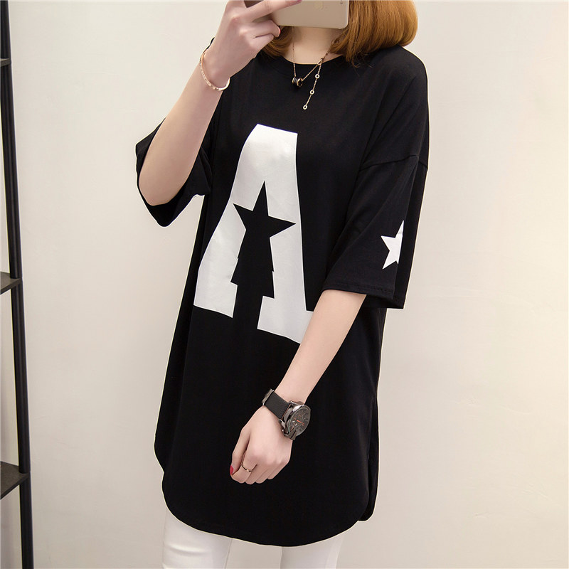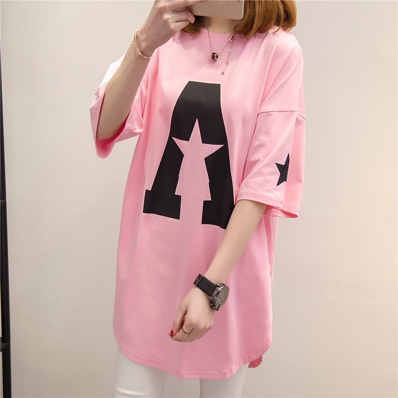 衣服女春裝新款潮中長款短袖t恤女寬松體恤夏裝韓版打底衫