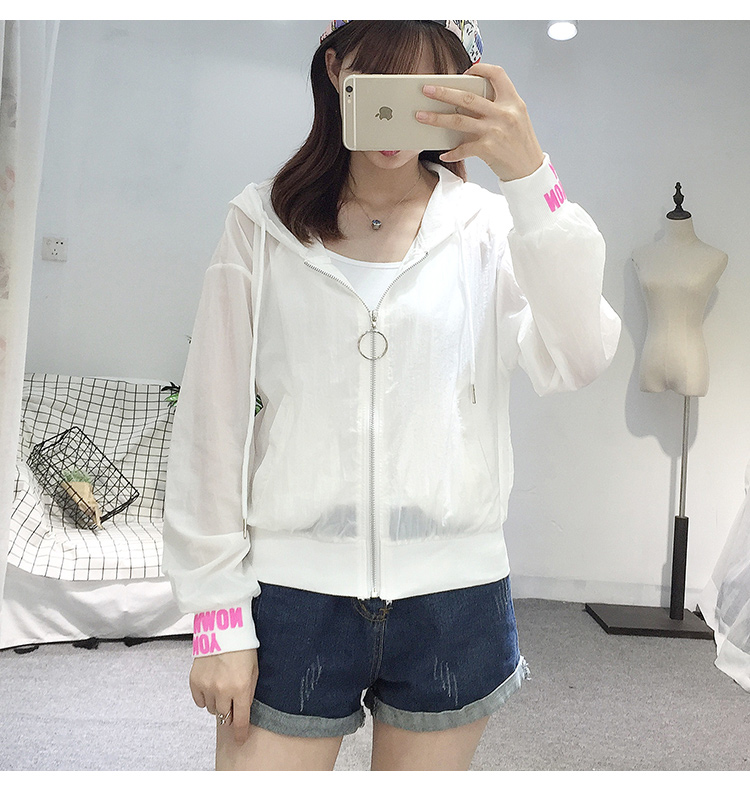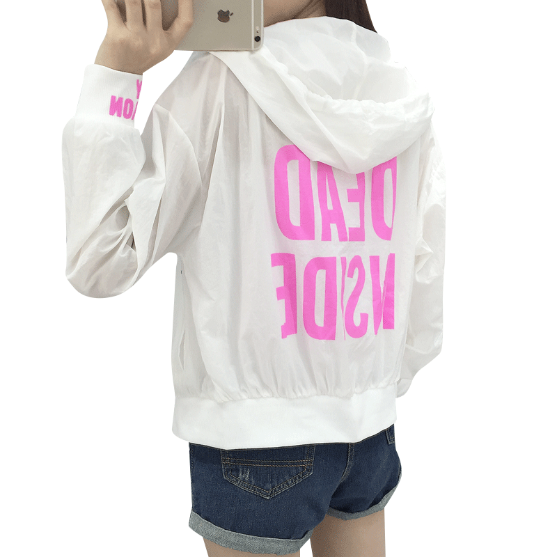 學生BF風寬松字母印花連帽防曬衣女2017夏季新款短款薄外套棒球服