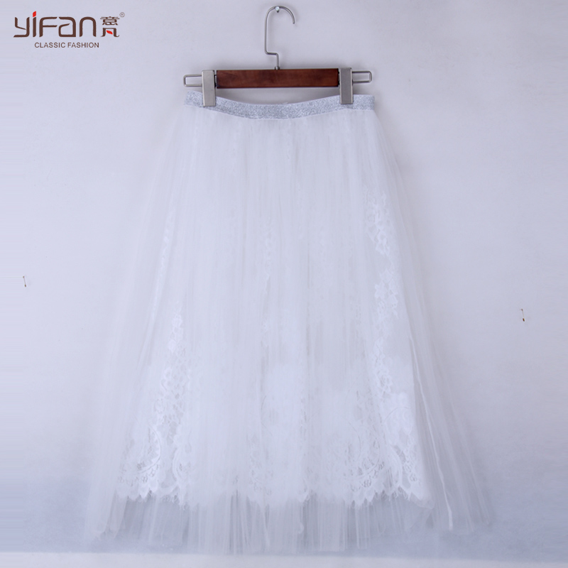 春夏新款半身裙透視蕾絲中長裙A字裙大碼長裙女